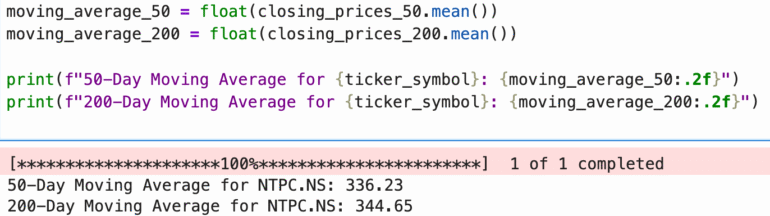 NTPC’s current price is below both the 50-day and 200-day moving averages.