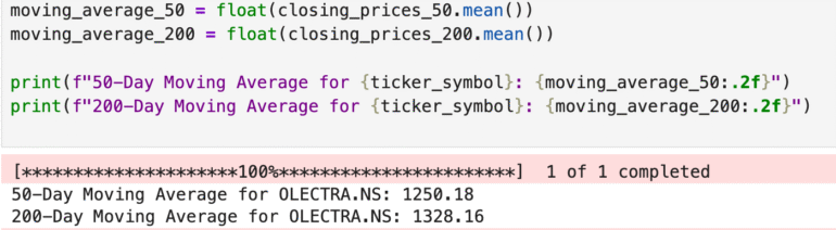 • Olectra’s current price is above its 50-day MA but below its 200-day MA.