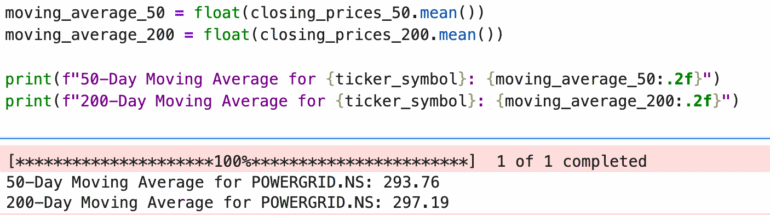 Power Grid’s current price is below both its 50-day and 200-day moving averages.